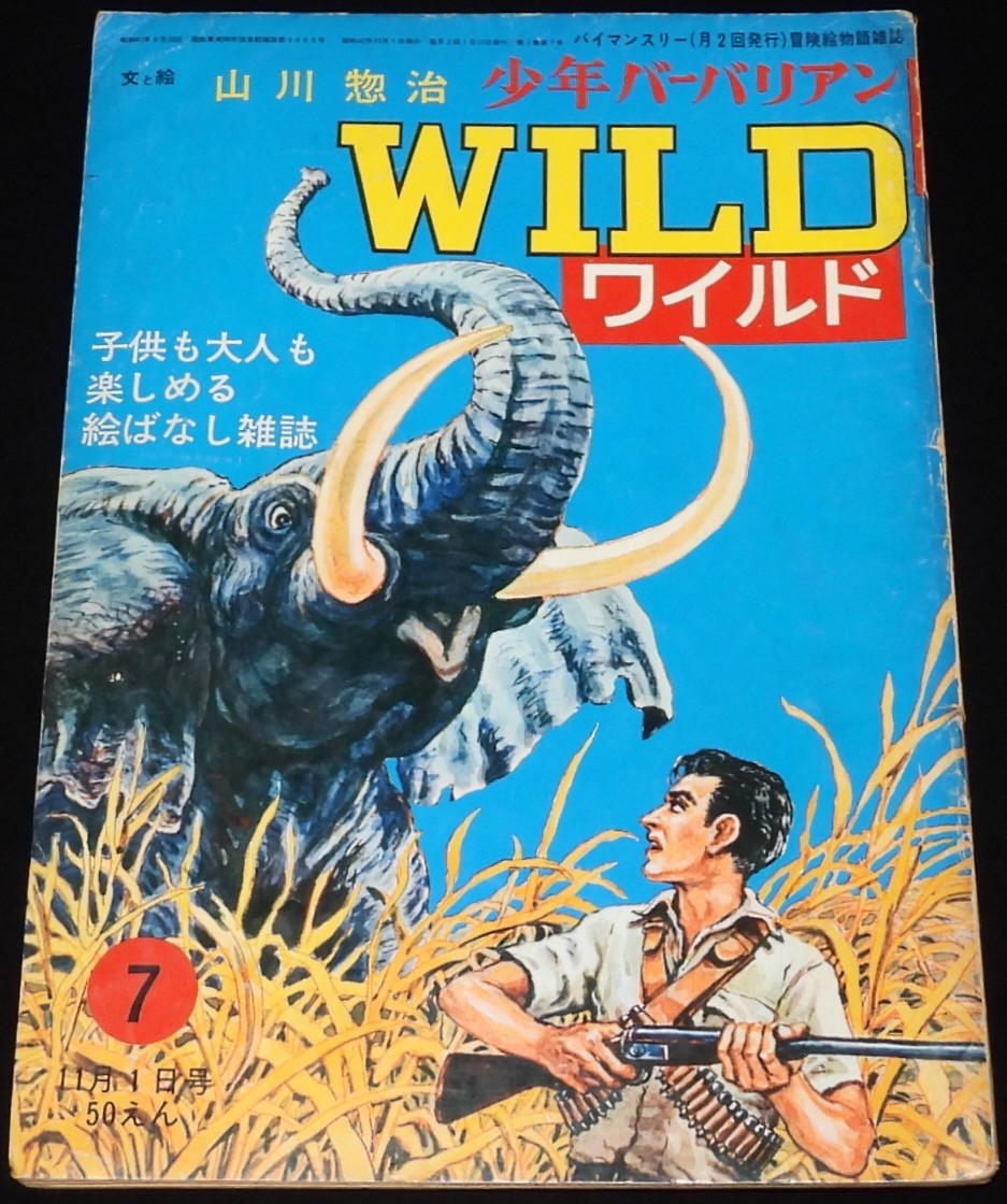 「WILD ワイルド 第7号 昭和42年11月」 Posted on 2025年2月23日 by 太田 諭 本日の一品は「WILD ワイルド 第7号 昭和42年11月」 https://page.auctions.yahoo.co.jp/jp/auction/e1174512832 「子どもの大人も楽しめる絵ばなし雑誌」 「山川惣治:少年バーバリアン(7)」 「山川惣治:幽霊牧場(7)」 漫画の隆盛にあえなく撃沈した絵物語雑誌、な一品。 #本日の一品 (ヤフオク出品商品の紹介です)