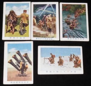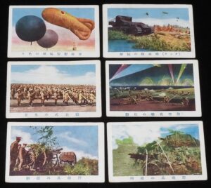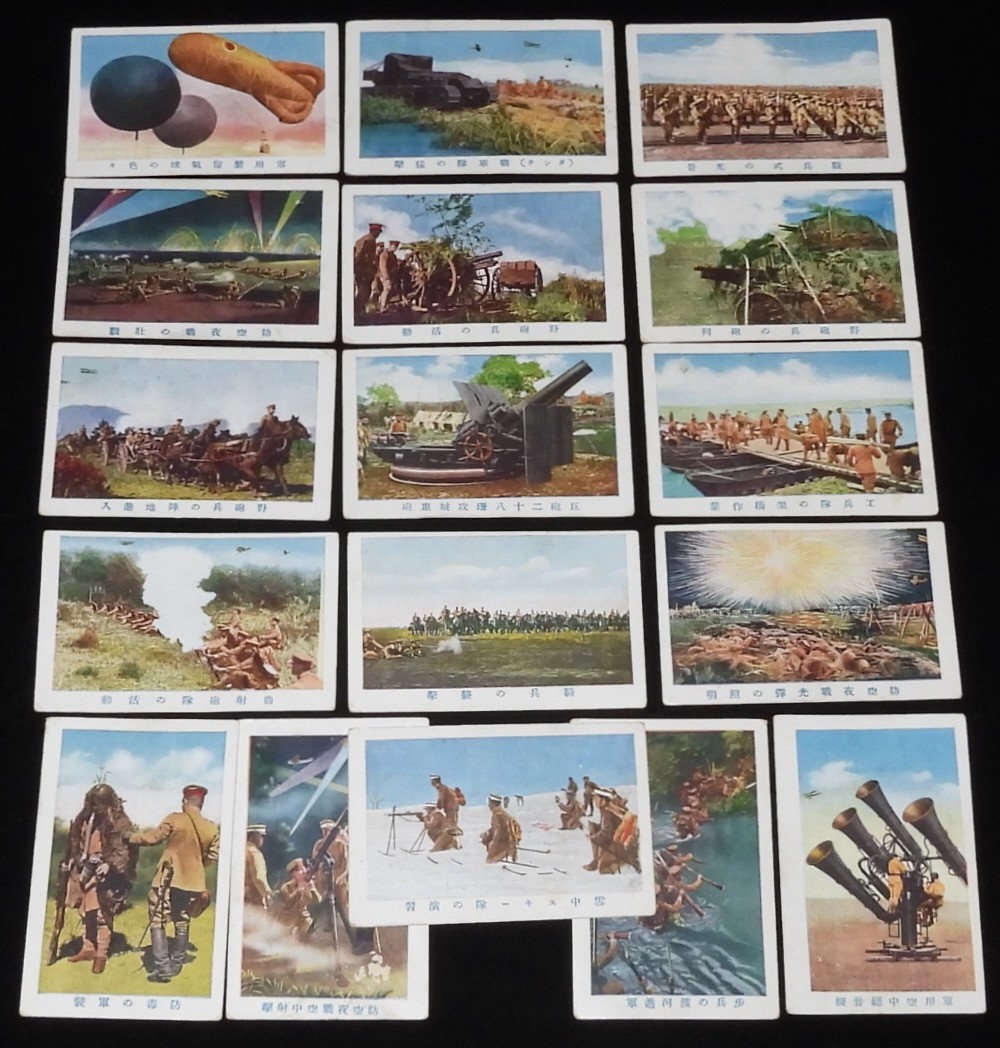 「【戦前カード】日中戦争 17枚セット」 Posted on 2025年3月7日 by 太田 諭 本日の一品は「【戦前カード】日中戦争 17枚セット」 https://page.auctions.yahoo.co.jp/jp/auction/d1176035119 「軍用繋留気球/戦車隊/防空夜戦/野砲兵/巨砲二十八珊重砲/工兵隊/曲射砲隊/騎兵/防空夜戦光弾/雪中スキー隊/防毒の軍装/軍用空中聴音機」 支那事変後の旧日本陸軍と思われます、な一品。 #本日の一品 (ヤフオク出品商品の紹介です)