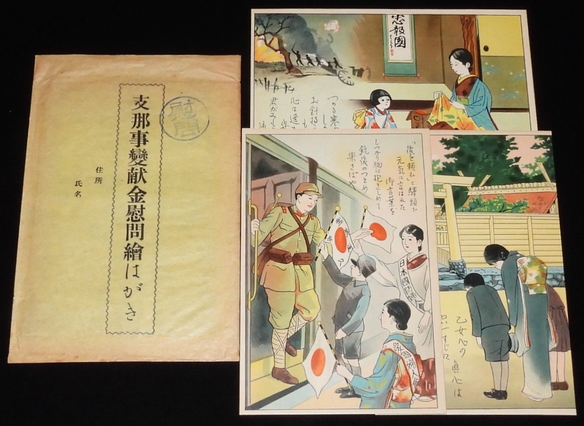 「【戦前絵葉書】支那事変献金慰問絵はがき 封筒入り3枚 日東慰問会」 Posted on 2025年4月25日 by 太田 諭 本日の一品は「【戦前絵葉書】支那事変献金慰問絵はがき 封筒入り3枚 日東慰問会」 https://auctions.yahoo.co.jp/jp/auction/p1182349008 「日本国防婦人会/愛国婦人会」 「後を頼む」と駅頭で 元気に言はれた御言葉を しつかり胸に抱きしめて 銃後のつとめ果さばや、な一品。 #本日の一品 (ヤフオク出品商品の紹介です)