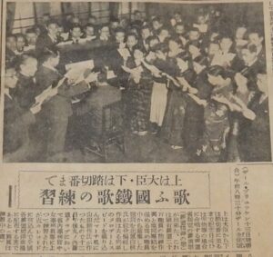 「歌ふ国鉄歌の練習/上は大臣、下は踏切番まで」