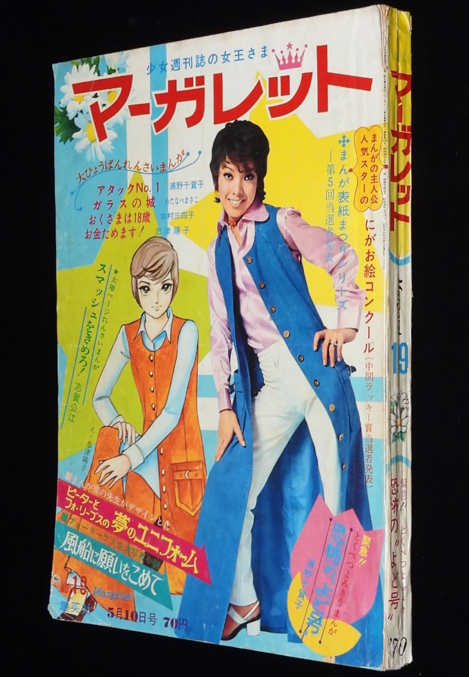 「週刊マーガレット 昭和45年19号」 Posted on 2025年5月27日 by 太田 諭 本日の一品は「週刊マーガレット 昭和45年19号」 https://auctions.yahoo.co.jp/jp/auction/t1186383992 「表紙:ピーター/忠津陽子」 「ピーターとフォーリーブスの夢のユニフォーム」 「浦野千賀子:恐怖の よど号(緊急特別よみきり)」 よど号ハイジャック事件がまんが化されてたとは知りませんでした、な一品。 #本日の一品 (ヤフオク出品商品の紹介です)