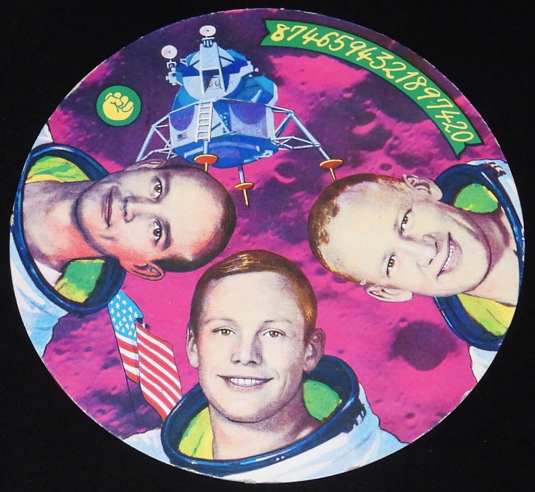 「丸面子 大判 アポロ11号」 Posted on 2025年5月29日 by 太田 諭 本日の一品は「丸面子 大判 アポロ11号」 https://auctions.yahoo.co.jp/jp/auction/k1186672010 「月面着陸/アームストロング/オルドリン/コリンズ」 昭和44年、小学4年生だった私もテレビで見てました、な一品。 #本日の一品 (ヤフオク出品商品の紹介です)