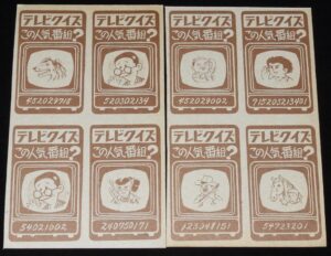 「角面子 ガッチャマンほか 4枚入りシート4枚セット 昭和40年代頃」 Posted on 2025年8月7日 by 太田 諭 本日の一品は「角面子 ガッチャマンほか 4枚入りシート4枚セット 昭和40年代頃」 https://auctions.yahoo.co.jp/jp/auction/r1195492856 元がなんだかよくわからないパチモンもありますが、 ウラ面のテレビクイズ この人気番組?も難易度高い気がします、な一品。 #本日の一品 (ヤフオク出品商品の紹介です)