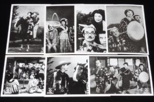 「【映画スチール】女次郎長 ワクワク道中 7枚セット 大映 昭和26年」 Posted on 2025年8月16日 by 太田 諭 本日の一品は「【映画スチール】女次郎長 ワクワク道中 7枚セット 大映 昭和26年」 https://auctions.yahoo.co.jp/jp/auction/p1196502504 「監督:加戸敏」 「キャスト:笠置シヅ子/横山エンタツ/伴淳三郎/ケニー・ダンカン」 占領下、時代劇と西部劇のコラボ映画、な一品。 #本日の一品 (ヤフオク出品商品の紹介です)