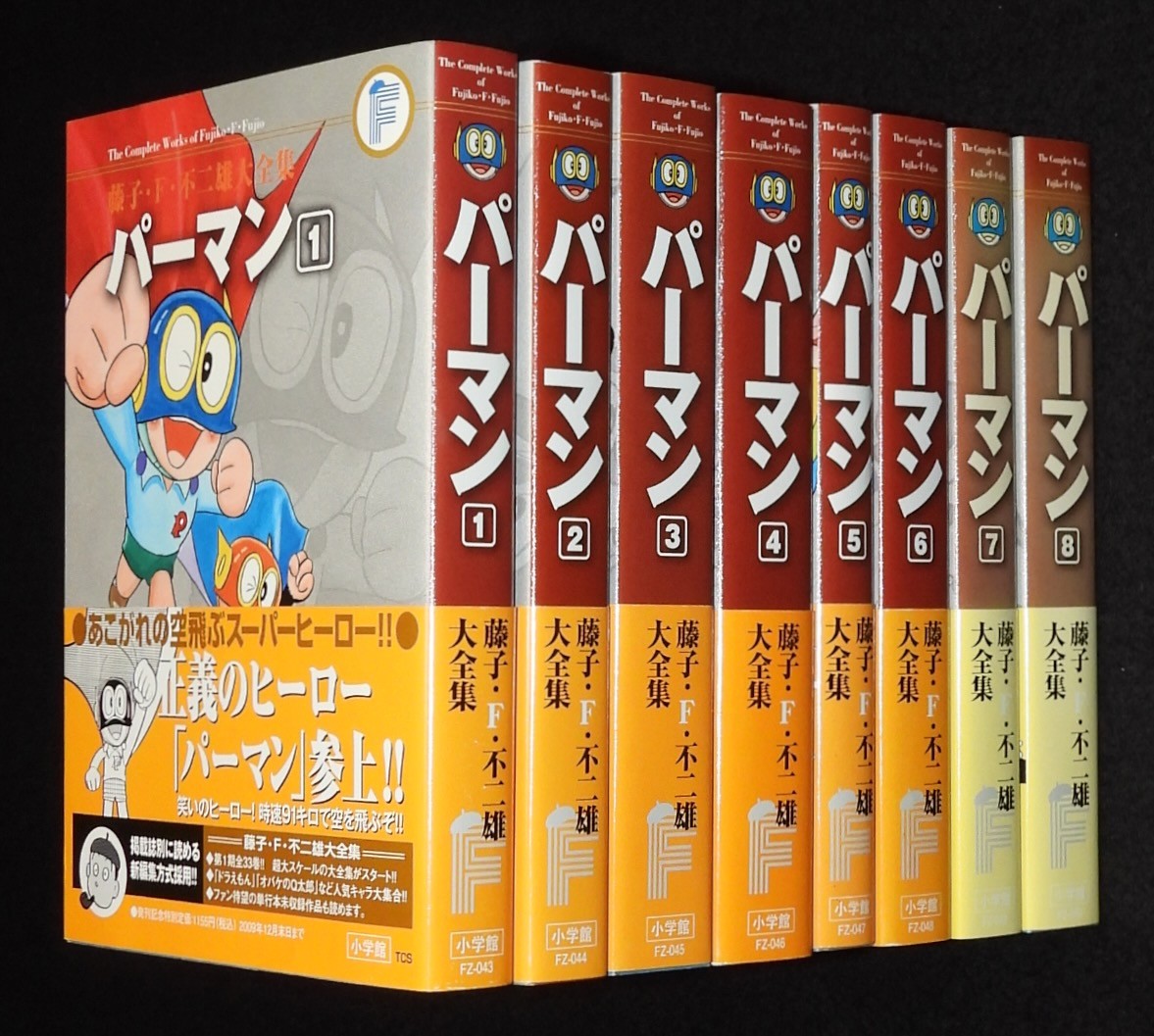 「藤子・F・不二雄大全集 パーマン 全8巻」 Posted on 2025年9月4日 by 太田 諭 本日の一品は「藤子・F・不二雄大全集 パーマン 全8巻」 https://auctions.yahoo.co.jp/jp/auction/b1198833178 「オール初版帯付/月報付き」 先行連載された学年誌版の第1回と、 少年サンデーの新連載予告はマスクが違ってました、な一品。 #本日の一品 (ヤフオク出品商品の紹介です)