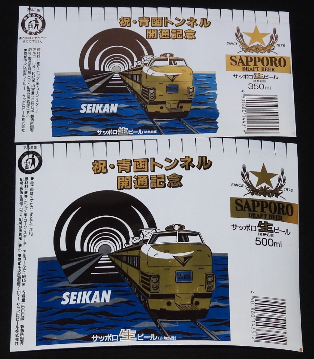 本日の一品は「【缶ビールラベル】サッポロ生ビール 祝・青函トンネル開通記念 2種セット 昭和63年」