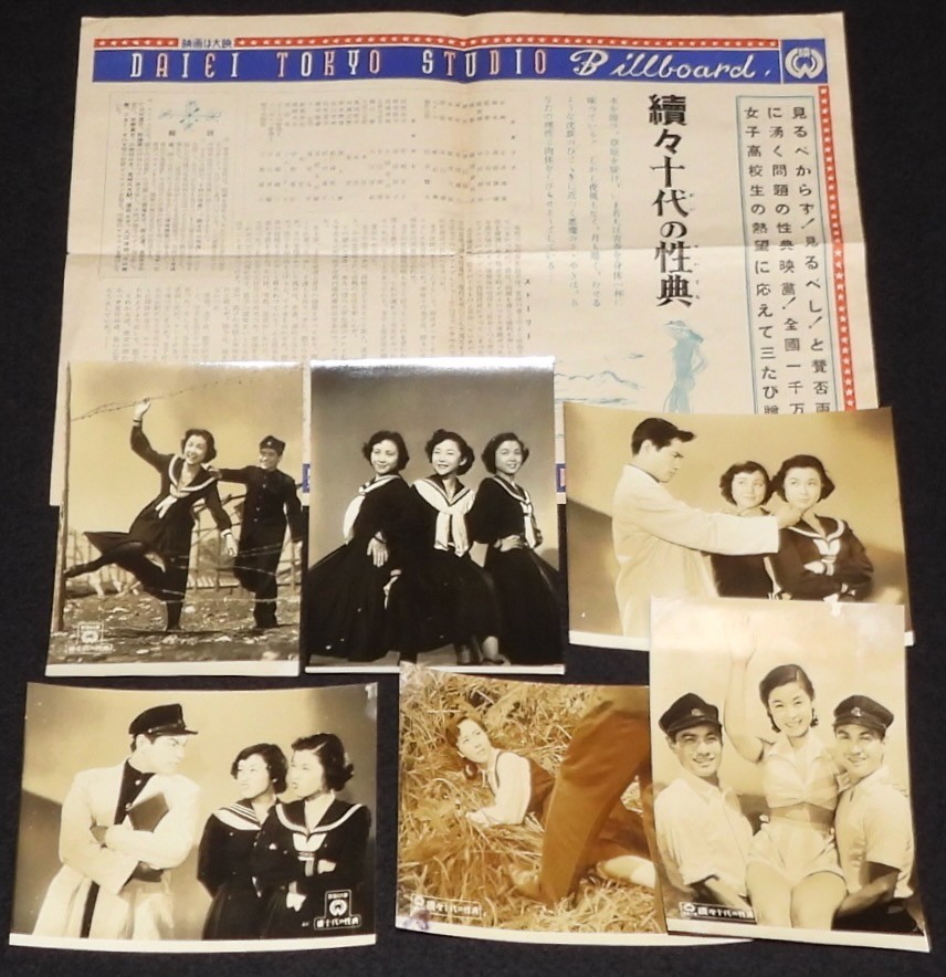 「【映画スチール】十代の性典 6枚セット 大映 昭和28年」 Posted on 2025年11月4日 by 太田 諭 本日の一品は「【映画スチール】十代の性典 6枚セット 大映 昭和28年」 https://auctions.yahoo.co.jp/jp/auction/m1206483558 「販促チラシ:大映東京撮影所ビルボード/続々十代の性典付き」 「続十代の性典 2枚/続々十代の性典 2枚/不明 2枚の計6枚セット」 若尾文子、まだ19歳で若いわ〜、な一品。 #本日の一品 (ヤフオク出品商品の紹介です)