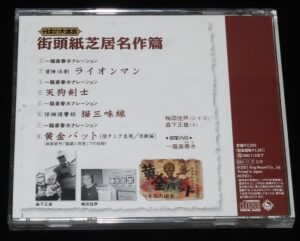 「【CD】日本の大道芸 街頭紙芝居名作篇」 Posted on 2025年11月7日 by 太田 諭 本日の一品は「【CD】日本の大道芸 街頭紙芝居名作篇」 https://auctions.yahoo.co.jp/jp/auction/b1206889642 「冒険活劇 ライオンマン」 「天狗剣士」 「怪猫復讐談 猫三味線」 「黄金バット(怪タンク出現/怪獣編)」 梅田佳声に森下正雄、な一品。 #本日の一品 (ヤフオク出品商品の紹介です)