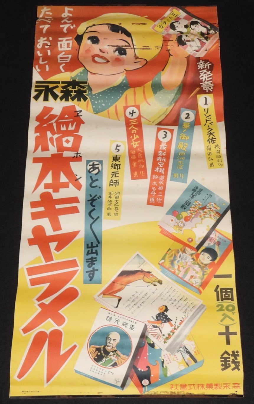 「【戦前ポスター】森永絵本キヤラメル 森永製菓」 Posted on 2025年11月18日 by 太田 諭 本日の一品は「【戦前ポスター】森永絵本キヤラメル 森永製菓」 https://auctions.yahoo.co.jp/jp/auction/q1208237464 「よんで面白く たべておいしい」 田川水疱の征空漫画 星ノ御殿に東郷元帥、な一品。 #本日の一品 (ヤフオク出品商品の紹介です)