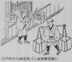 「江戸時代の納豆売/昭和初期の納豆製造器」