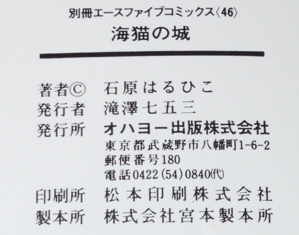 石原はるひこ初期傑作集 海猫の城 オハヨー出版 別冊エースファイブコミックス B6判. 「発行年未記載」 ■状態■並 カバー少汚れシミ、端少痛み、少背ヤケ、本文少シミ、端少折れ目、小口ヤケシミ.