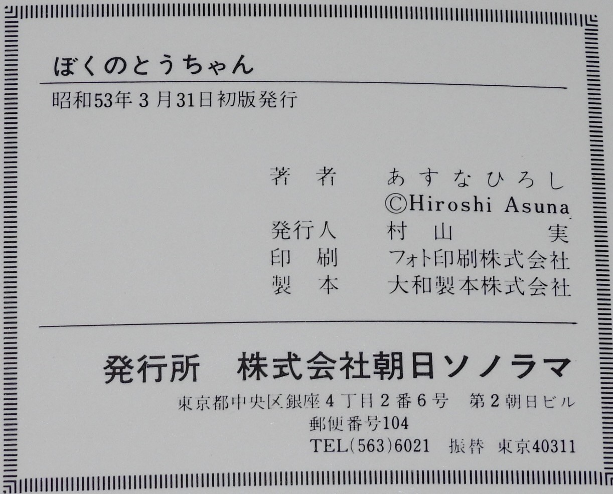 あすなひろし ぼくのとうちゃん 朝日ソノラマ・サンコミックス 昭和53年3月初版 新書判.