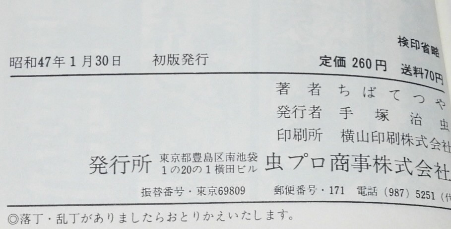 ちばてつや 島っ子(3) 虫プロ商事・虫コミックス 昭和47年1月初版 新書判.
