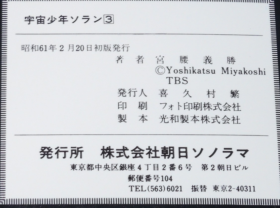 宮腰義勝 宇宙少年ソラン(3) 朝日ソノラマ・サンワイドコミックス 昭和61年2月初版 B6判. ■状態■並~並上 カバー少汚れシミ、端少痛み、本文少シミ、端少折れ目、小口少ヤケシミ.