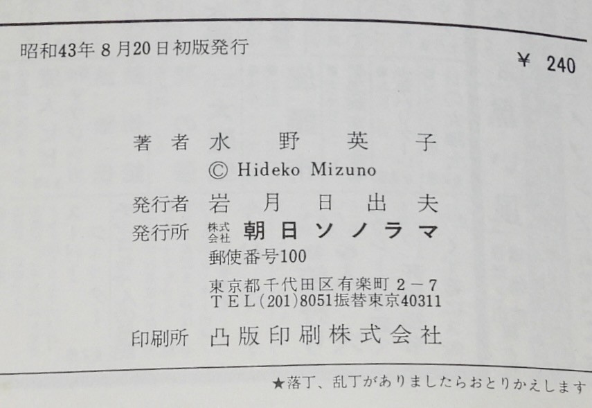 水野英子 星のファンタジー 難あり 朝日ソノラマ・サンコミックス 昭和43年8月初版 新書判.