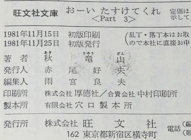 秋竜山 おーい たすけてくれ(3) 旺文社文庫 1981年11月初版