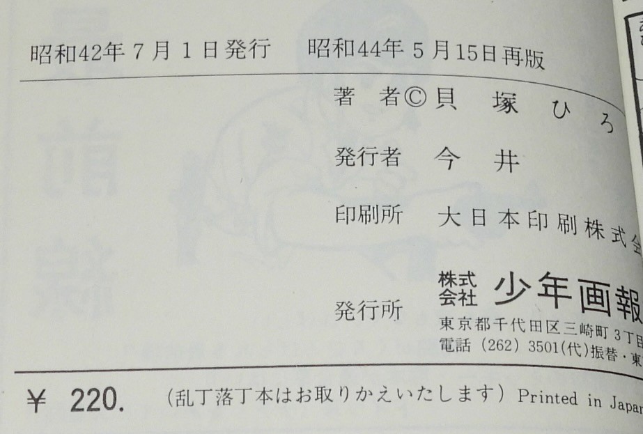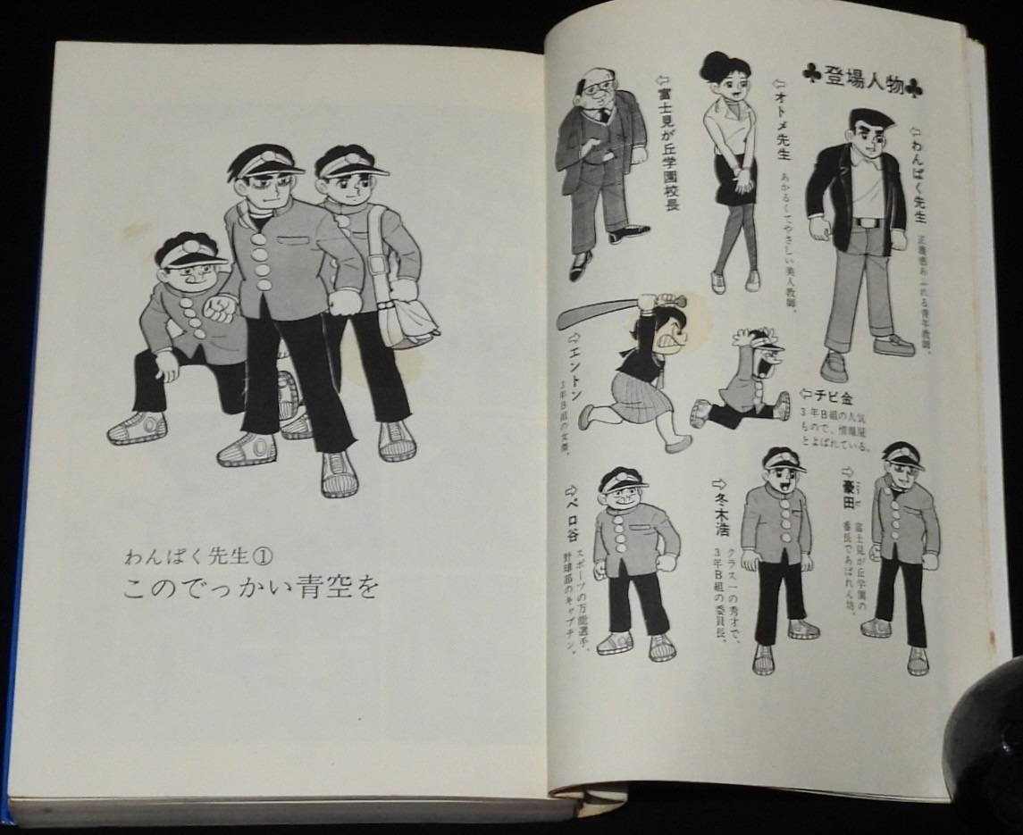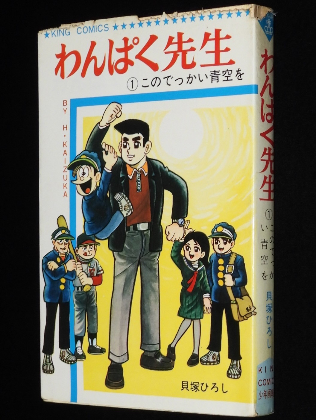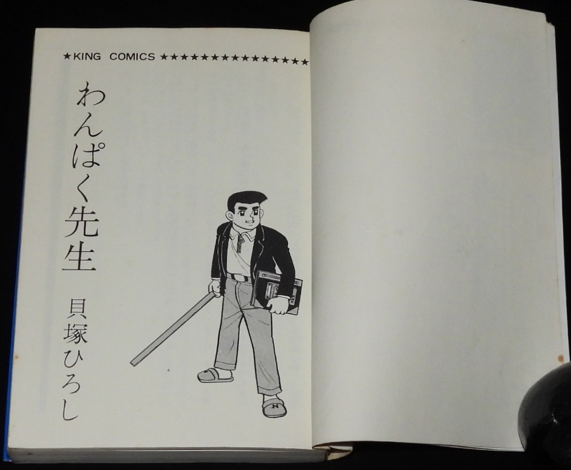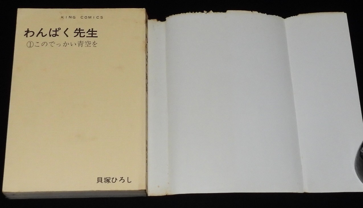 貝塚ひろし わんぱく先生(1) 少年画報社キングコミックス 昭和44年5月再版 新書判. 「このでっかい青空を」 ■状態■並~並下 カバー少汚れシミ、少折れ目シワ、端少破れ、上端破れ少欠、本文少シミ、端少折れ目、小口ヤケシミ.
