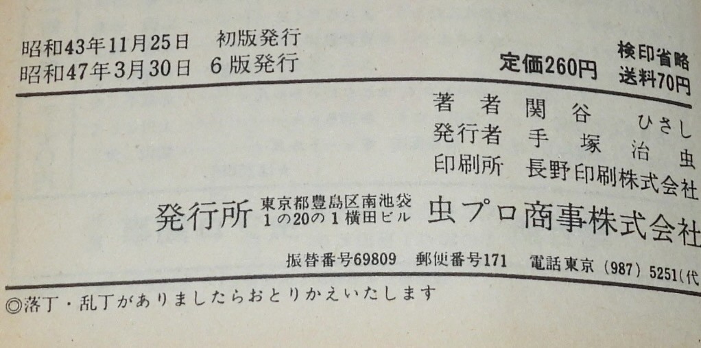 関谷ひさし ストップ!にいちゃん(4) 虫プロ商事・虫コミックス 昭和47年3月6版 新書判.